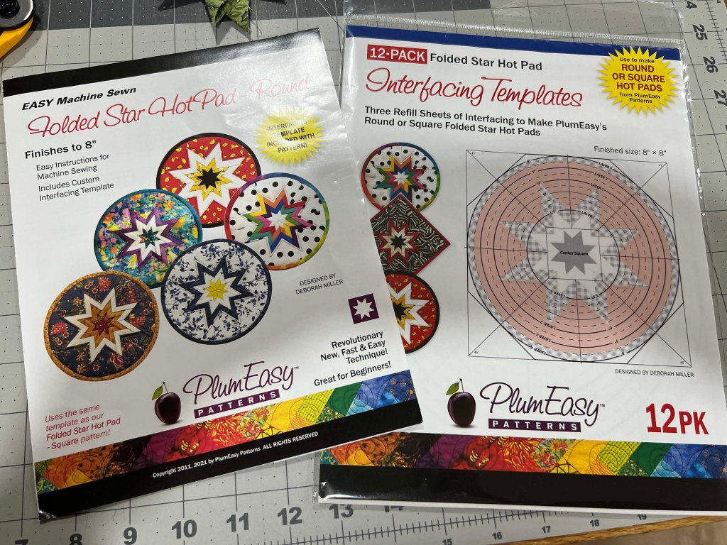Last year, I was hoping to make a bunch of these folded star hot pads as gifts. Have you ever seen them? Mine were purchased at ShabbyFabrics.com. You really need these paper templates to make them, and I bought a pack of twelve.