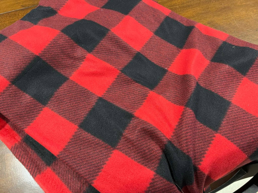 For Fred’s backing, I bought this fleece buffalo check, so my DD can just flip it over like the chicken quilt. I just realized, as I was picking off lint for the photo, it is going to be a giant cat hair magnet, so I’m not sure there’s an upside for her with this gift!