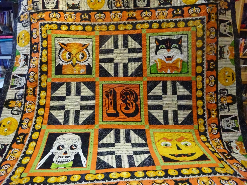 And here’s my Jeepers Creepers Peepers for keepers! Yes, this is for me. Proof that we can get quilt kits from twelve years ago made and on the beds. This one will have to wait a few months, though. This one has owl quilting. I just love it– got to go through my stuff and see what else is in there!