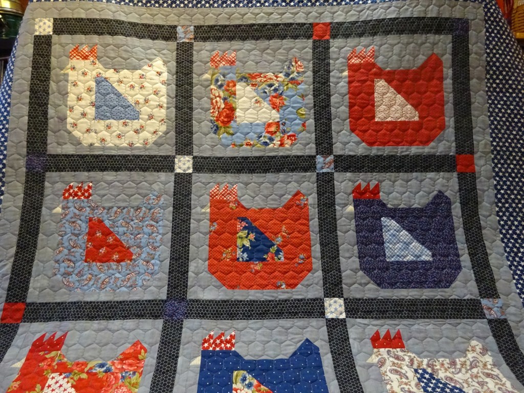 Then here is my son’s chicken quilt– I really wanted chicken wire, that’s part of the reason I decided not to do it myself. My friend thinks I should keep it! I pulled these off my friend’s business website, and I can’t wait to see it in person.