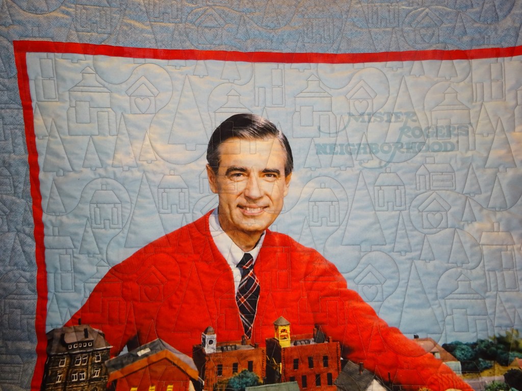 Here is Mr. Rogers! He now has a quilted neighborhood. My son-in-law is definitely going to be surprised… I don’t think he really understands what I do with myself all day!