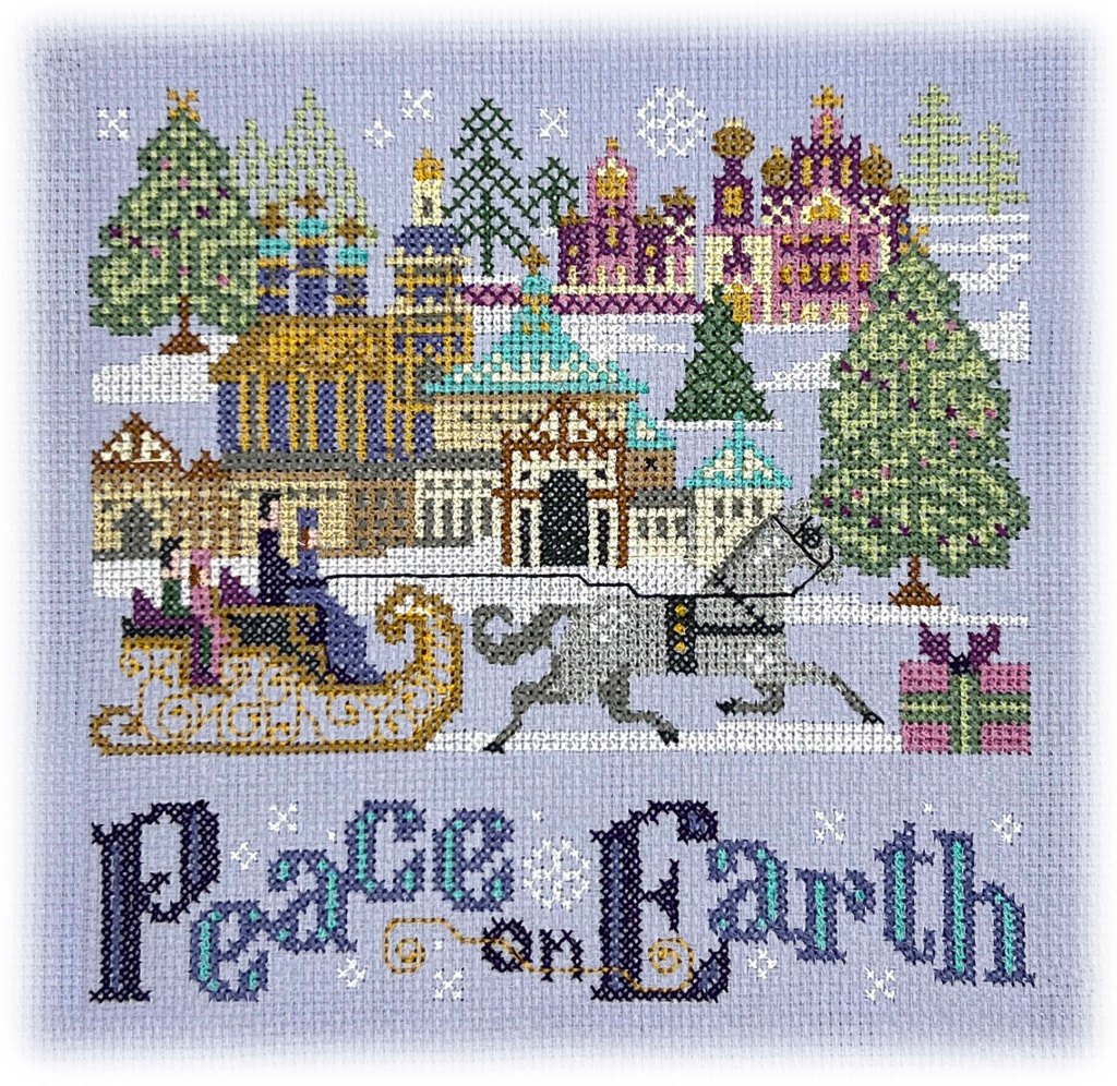 But I have to tell you, I am obsessed with this thing– I LIVE for stitching on it a little in the morning and a little a night. Look at the cute baby Jesus and the little puppy! Look at Santa in the sky! I’ve been a little cranky lately with all the hard work and all the things that need doing and this is all it takes to keep me soldiering along.