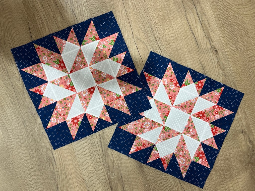 I also got another couple of blocks done for Moonbeams. These are the “Friendship Star” blocks. It’s a very sparkly quilt and I’m starting to have a nice collection of blocks.