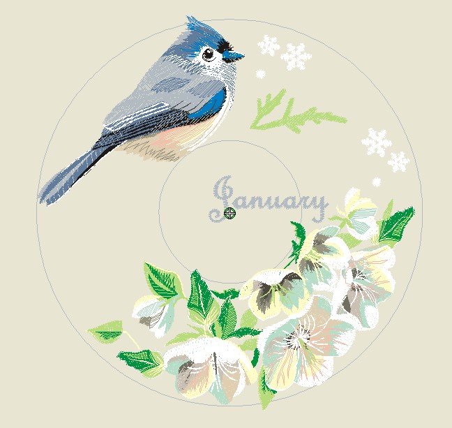 Oh– and there’s that pesky word– JANUARY! I just can’t resist– I love the months and the seasons. I’m going to make JANUARY a color change of its own, so you can omit it if you feel miffed that this is probably going to release closer to February. This blending of thread work is difficult and can’t be rushed– it will probably take two or three stitch outs to perfect. I’m also waiting on a new fabulous Grunge color, “Soothing.” to test it on. Stay focused and we are going to end up with a gorgeous show quilt– I’m calling it “A Year on Sugar Meadow.” xox