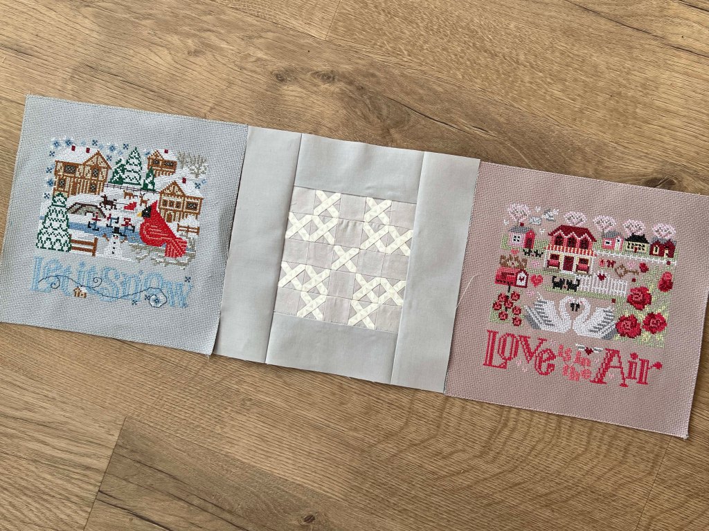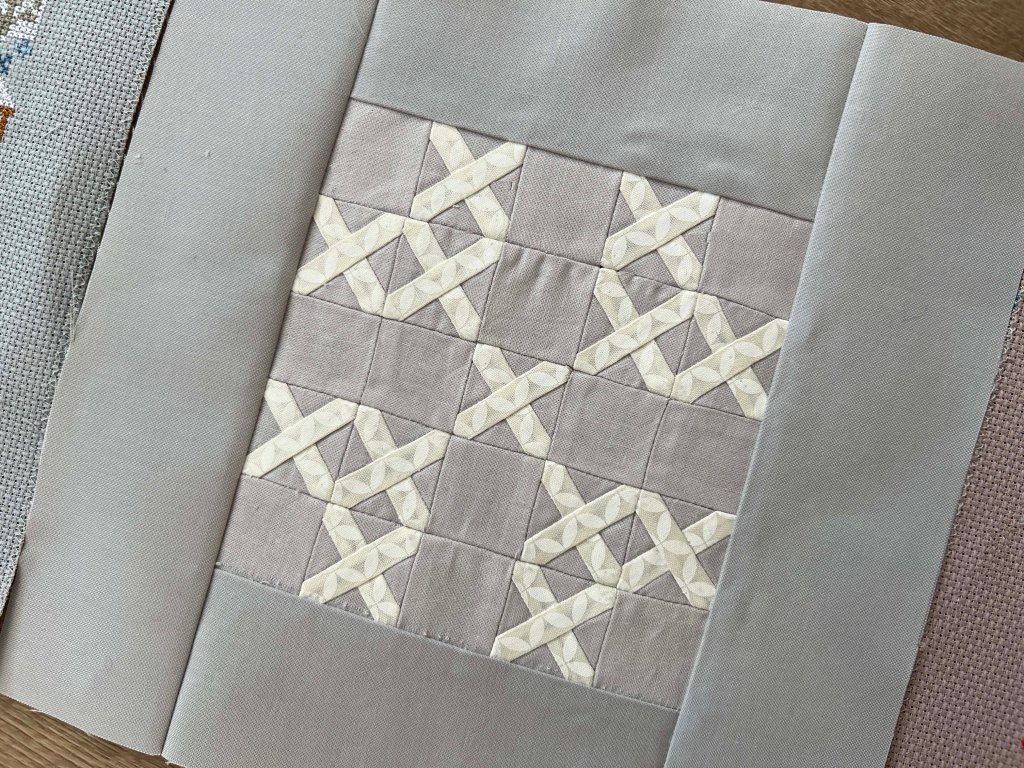 I stayed the course and finished my “cross stitch” snowflake block. Please admire how the crosses are all now going from lower left to upper right and don’t focus on anything else. What an effort.