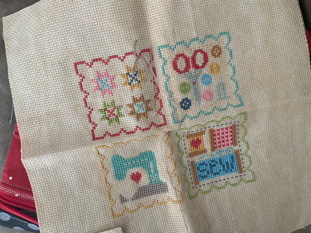 And finally, I did the Moonbeams cross stitch to match the quilt, but I stopped short at some of the olive branches in the doves’ beaks for whatever reason. Have you ever seen projects so close to being finished, without being finished? Do you have such objects lying around your house? I’d really be interest to know.