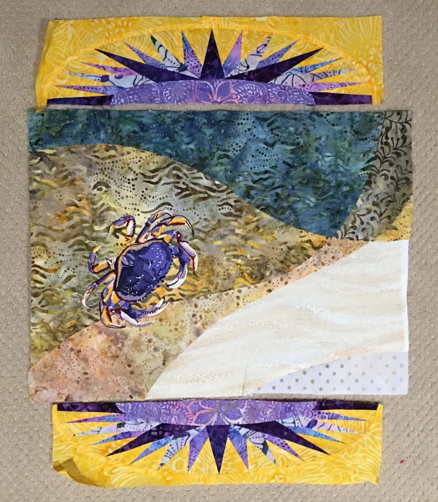 Occasionally, (heehee) I do an embroidery design I just love. This was actually one of my very first realistic animals I did in 2012 (that long ago???)– and I decided to feature it in a larger piece. I started making this shortly thereafter as a tribute to my time in San Francisco– it’s the infamous Dungeness Crab you can smell roasting on ever corner at the waterfront. The picture above is from 2017– time goes by, does it not?