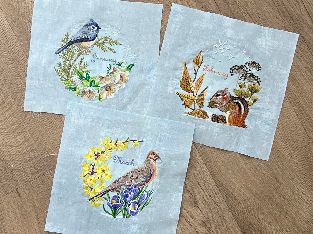 Yes, the Sugar Meadow block of the month has released. It’s a bit euphemistic compared to the actual state of affairs around here, but I checked my photo roll and last year we had these things in March! That was my biggest accomplishment of the week– we now have a set of three and I’m hoping they get easier to digitize as time goes by!