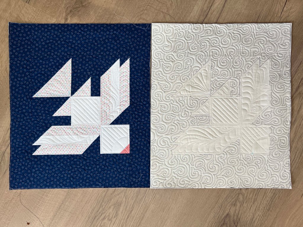 On the longarm, I finished the dove pillow shams and I’m fairly pleased with them.