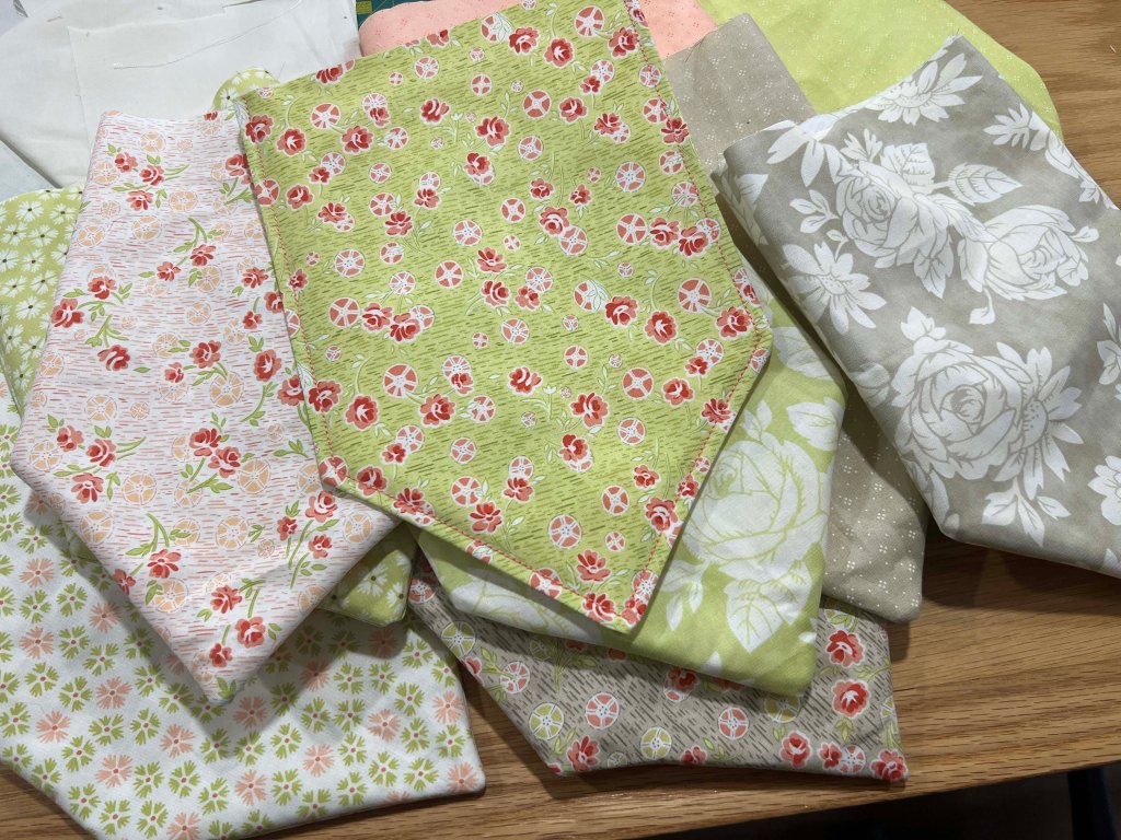 Then, I have an assignment for the upcoming baby shower– make a banner. The color of the baby’s room is coral, so it’s going to be used as a decoration after. It’s easy to make and I had the perfect Fig Tree fabrics for it. I’ll probably embroider the baby’s name, after it is “official.” I’ve seen banners on quilt-y blogs for a long time– but this is my first.