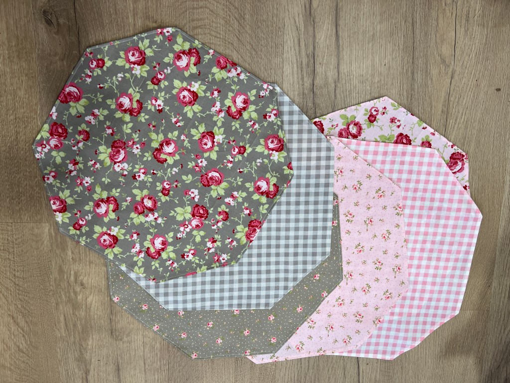 After the shower, I’m going to add the baby’s name to the little panels for the nursery so I cracked out my best Fig Tree and Brenda Riddle fabrics for the occasion. Then these are little centerpieces for the tables. I fully intend to get these back and re-cut them for quilts– they make such great patterns and colors for a little girl.