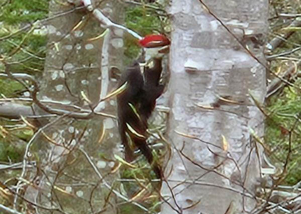The bird feeder has attracted goldfinches, blue jays, grosbeaks and more. My hummingbird feeder/Mother’s Day gift has quite a few customers– you can see the difference in their sizes, which is how I can tell there’s more than one. The loons are making a racket on the lake at night, but not as much as Woody the woodpecker’s jackhammering behind the house.