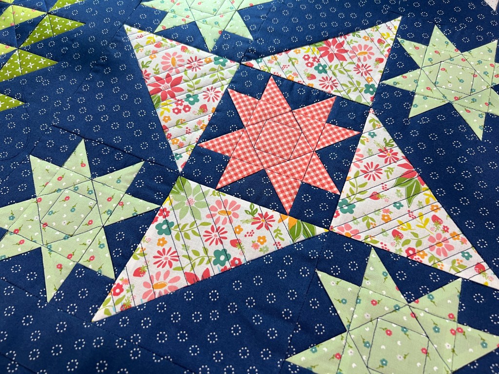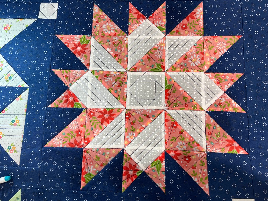 I stayed on schedule with my Moonbeams quilting– one block a day. No regrets, just forward progress, please!