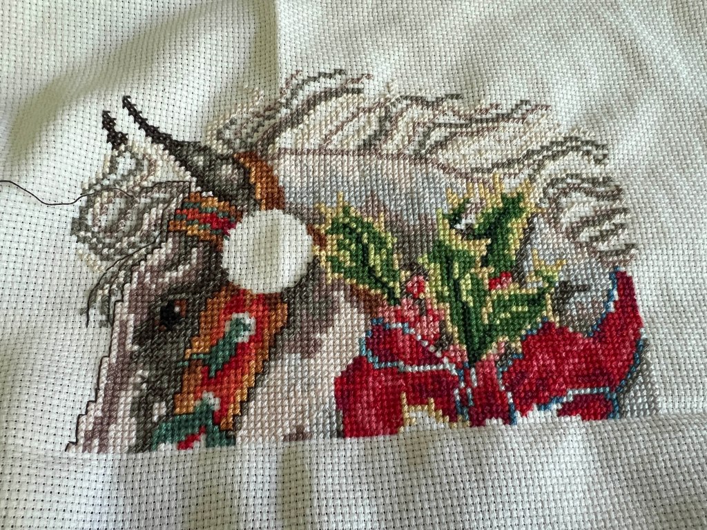 On the Christmas stocking front, I have blazed through page one of the Holly Horse pattern. It’s amazing what happens when you are a “monogamous” cross stitcher!
