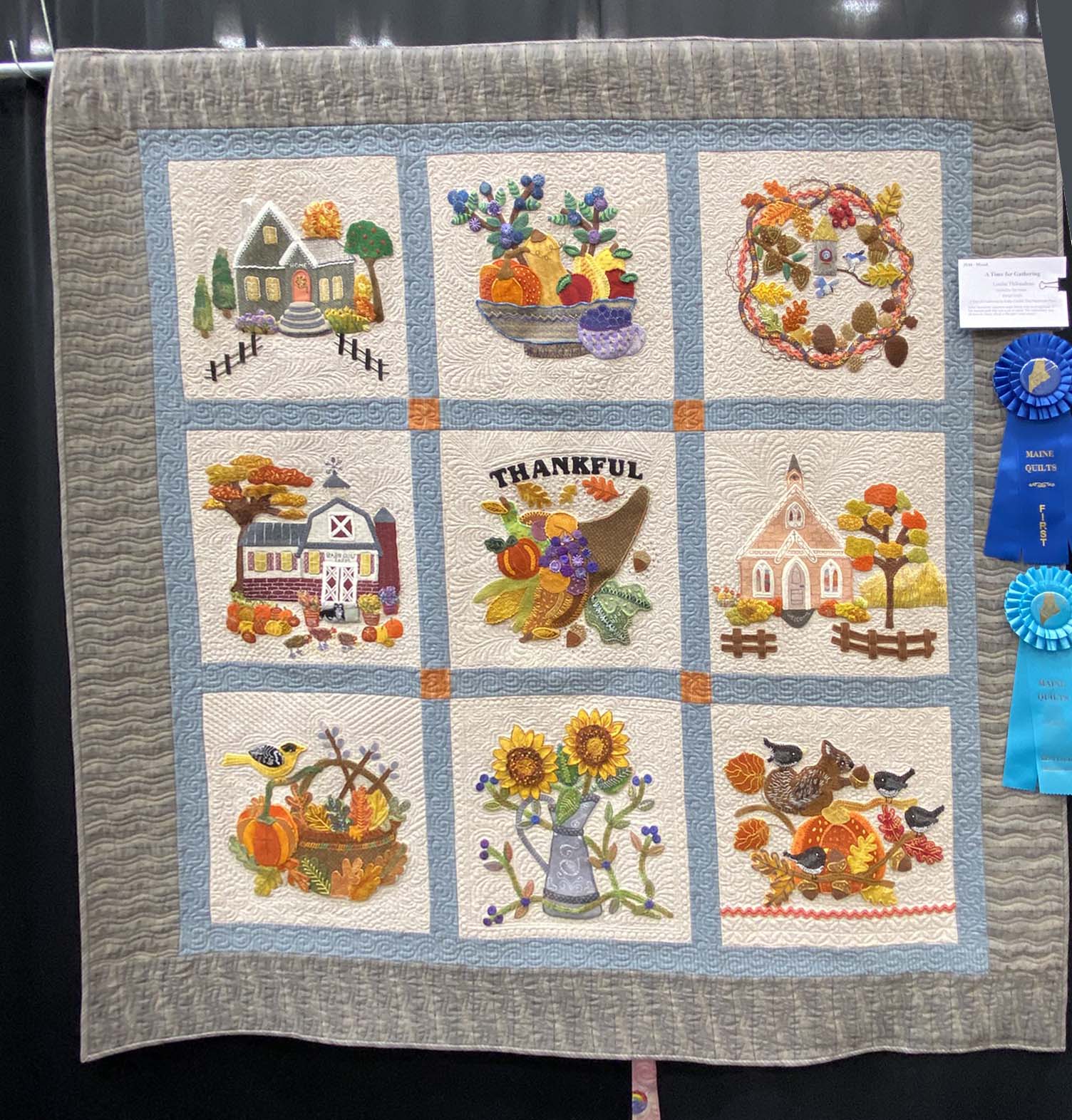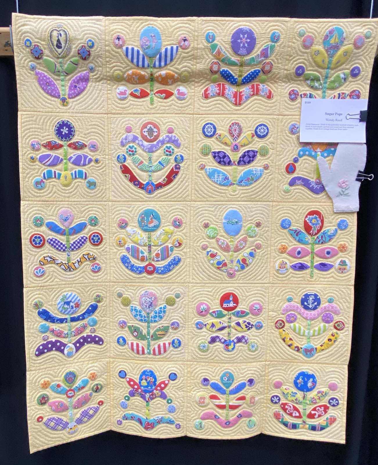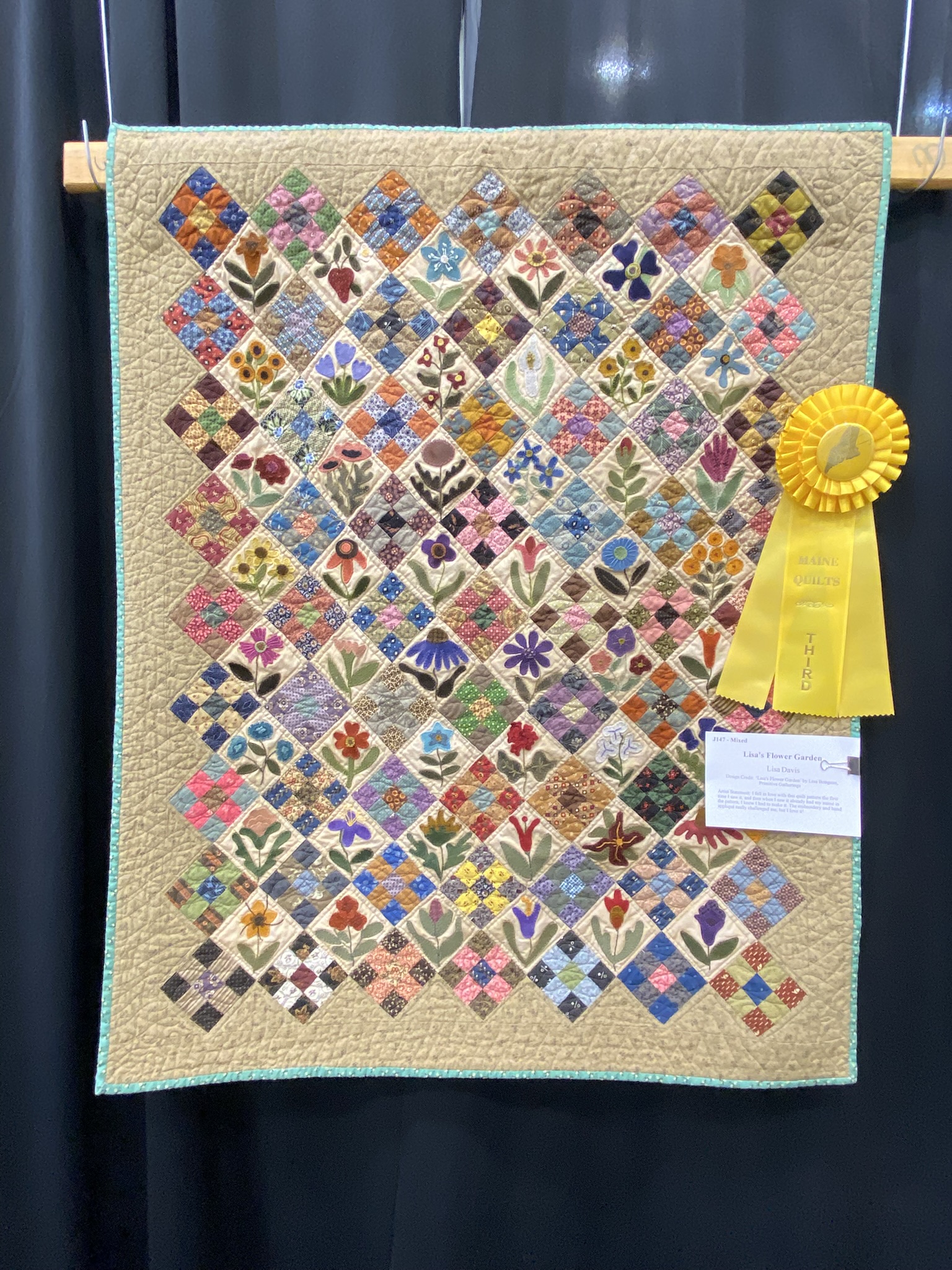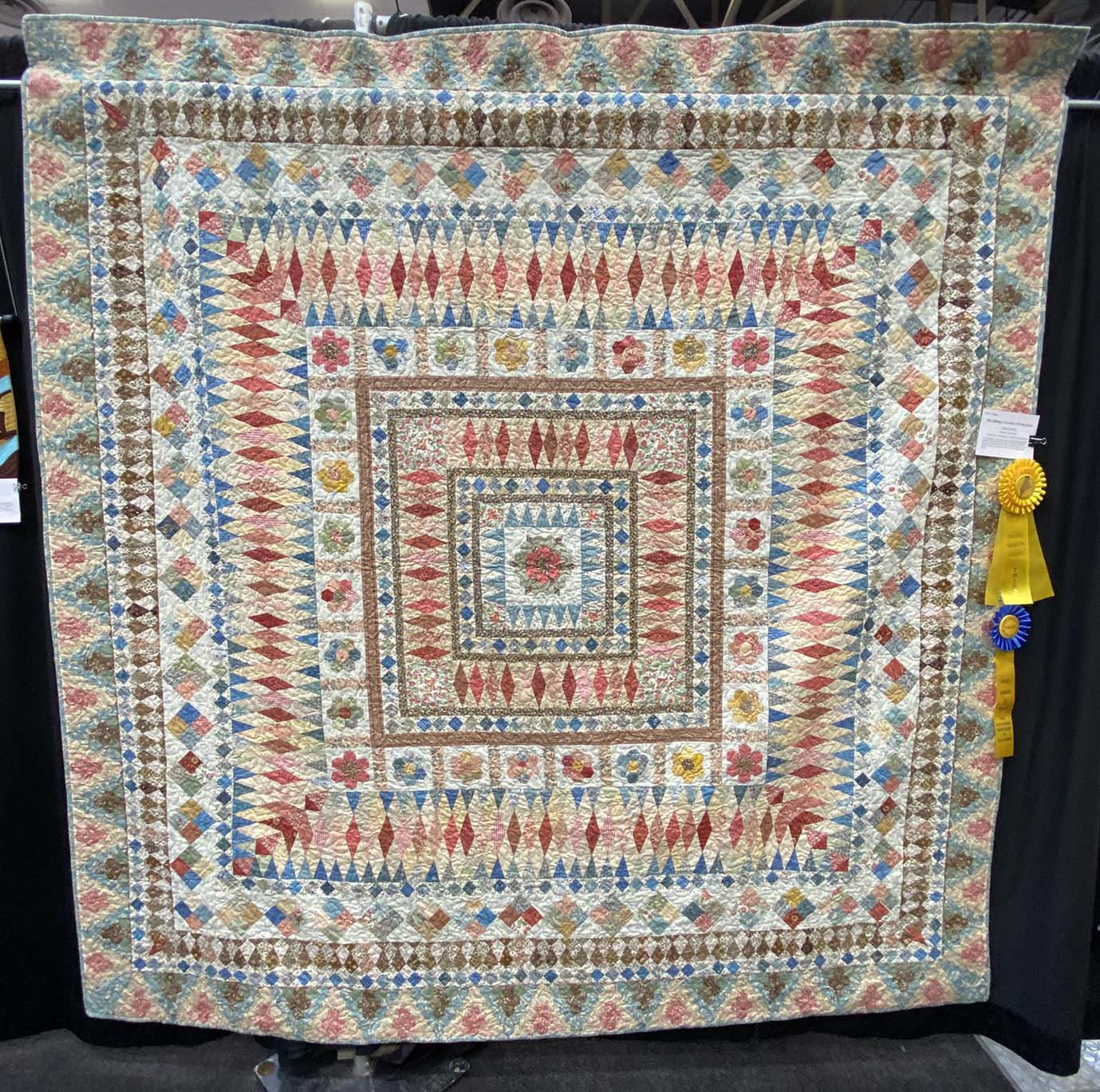 Congratulations on the blue ribbon, what a well deserved honor! There are some incredibly beautiful quilts in that show, wow! The only one vaguely familiar to me is the blue/cream one (in the post it’s next to the photo of ‘A Valued Experiment’) and it looks like the Alaska quilt pattern, or a variation of it. I’m no expert so I could be completely wrong about that 🙂