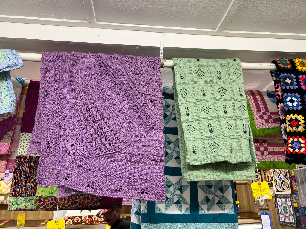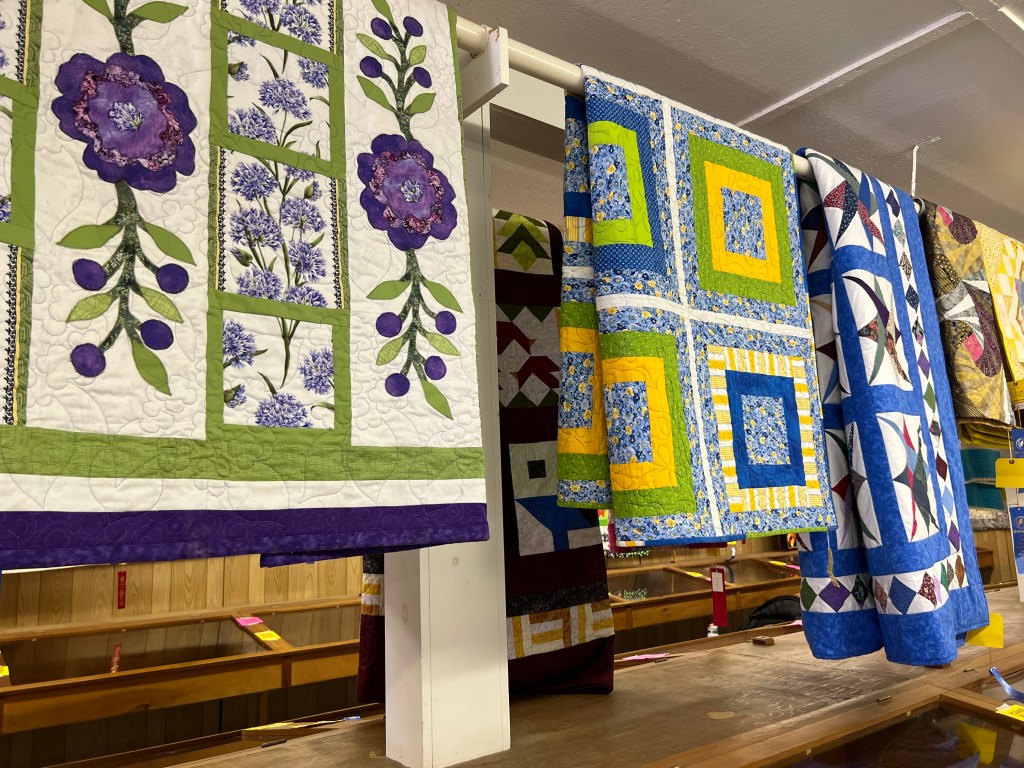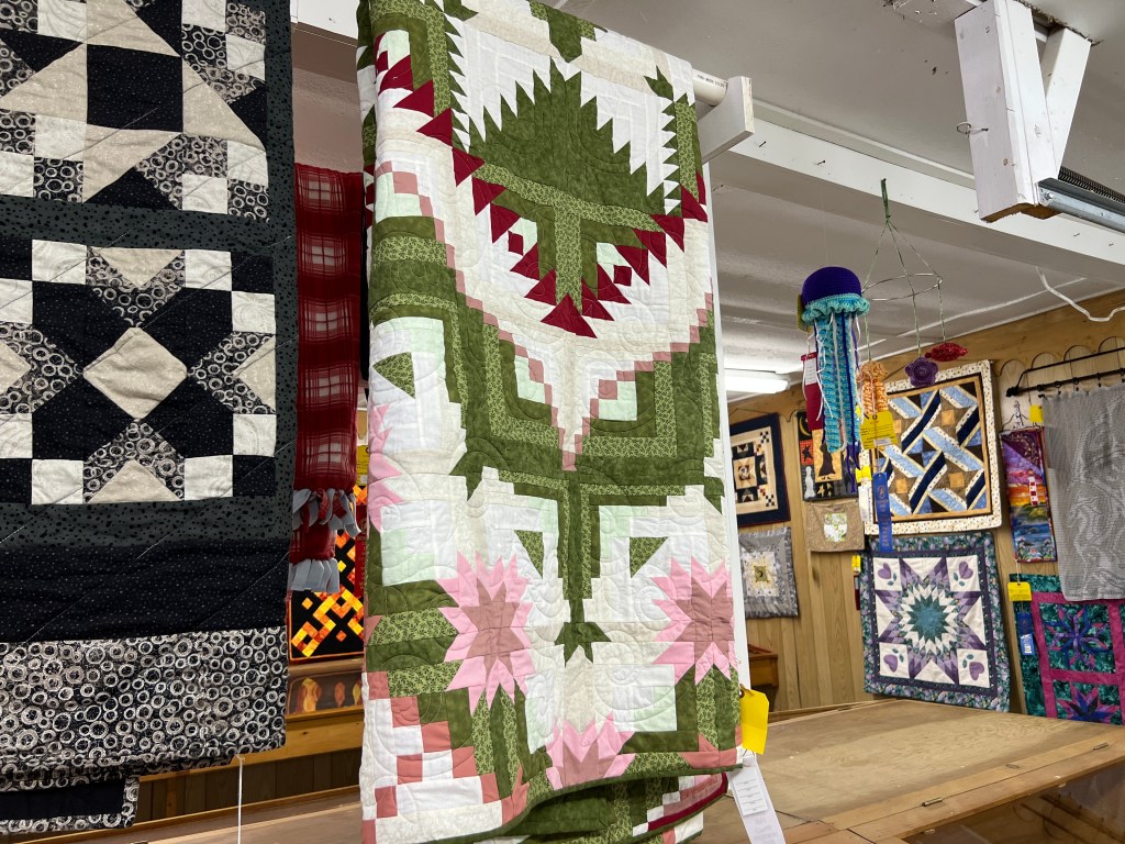 Here are some of the quilts– no professionals allowed! They have to fold them to have room to display them.