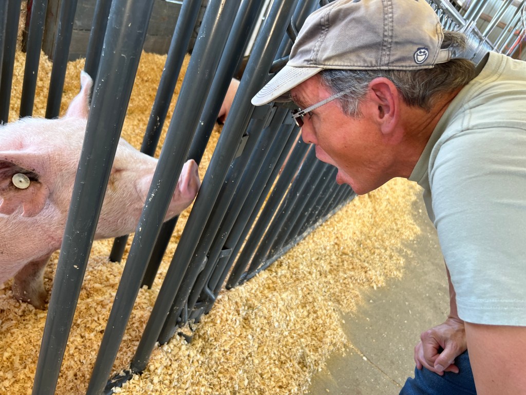 He passed the farmer test. He was hanging around the sheep display when someone mistook him for an owner and asked him why they had blankets on. Without missing a beat, he said, “To keep the flies off.” 🙂