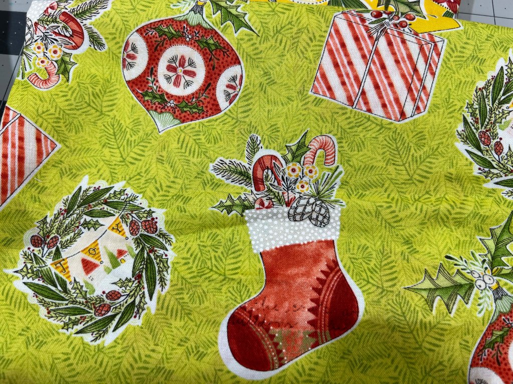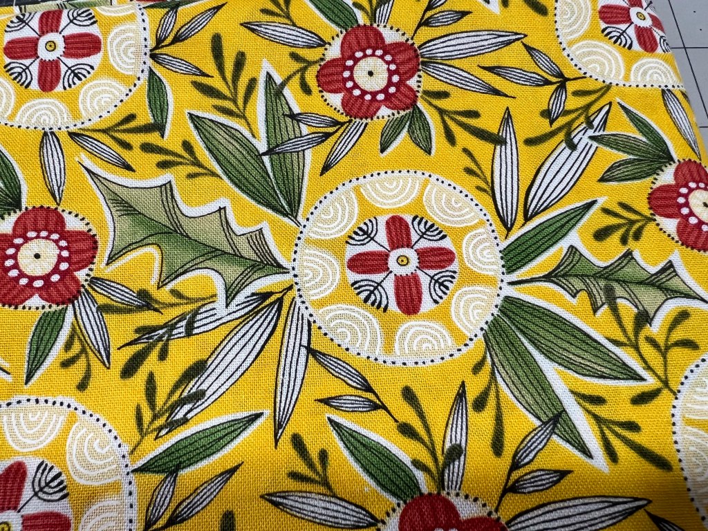 On Saturday, Mr SFO and I visited Marden’s for the first time in a couple of months– that glorious Maine liquidator of all things retail. I didn’t intend to buy fabric– (We never do, do we!) but I found some glorious Christmas prints for $6.99 a yard.