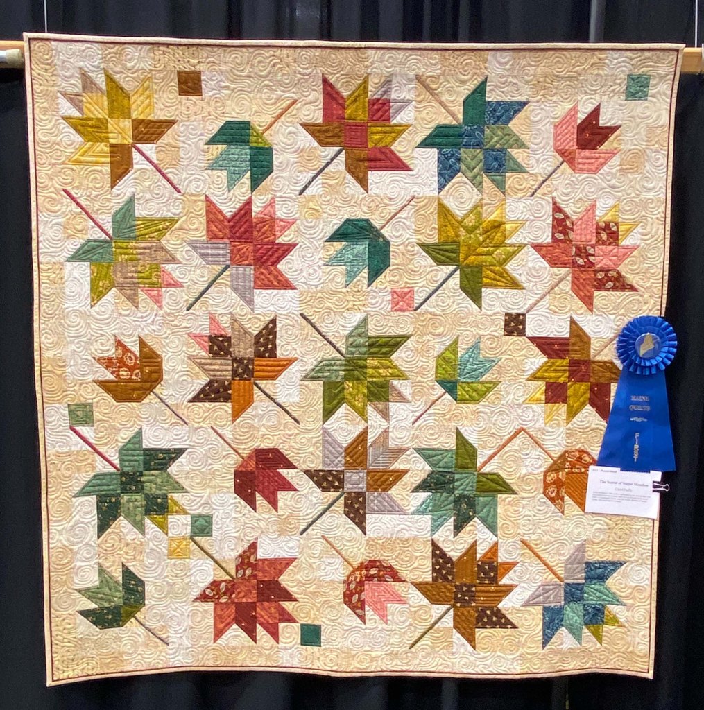 And on to July! I think this was my best finish of 2025– when I saw that blue ribbon at the Maine Quilt Show, I almost passed out. Maple leaves are such at thing in my life– my grandmother lived on Maple Street, my first home was on a different Maple Street, and now maple sugar is a thing, here on Sugar Meadow. Three cheers for Maples! xox