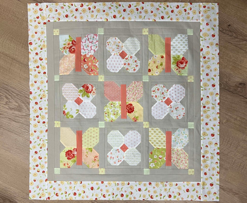 Next up– Harlow was on the way! What reason is there for my entire existence if it is not to shower grandkids with quilts? I do not like butterflies and this kit from a Little Box of Figs subscription sat around for three or four years. All of the sudden, it was perfect– a poster child for hanging on to things. It was so easy to stitch up and is already in use.