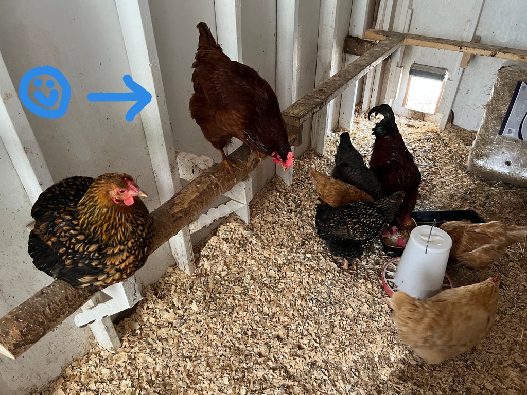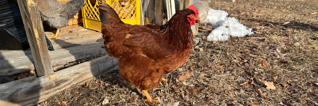 The week didn’t get off to a great start– I went to tuck in my chickens one night, and no matter how many times I counted, I came up with 19 instead of 20. I had to think it through, going over all of them in my head, to discover little Rosalyn, the Rhode Island Red we hatched ourselves, was missing. Then, at least three people went into the coop to check my numbers. This is the last picture I have of her– it was a while ago, because there’s no snow on the ground, but at least it’s a good one.