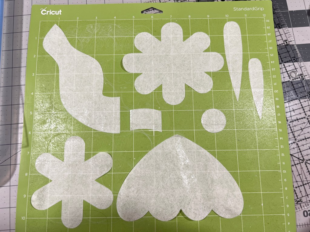 After that, I decided I better justify my consumerism by using all the things. So, I made the Sweet Land shapes in Illustrator and then sent them to the Cricut for cutting. I use Appliquik iron on stabilizer to cut out pieces– not Lori’s stitch and turn method– it’s just a personal preference. This is really working for me– they are perfect and I can make as many as I need.