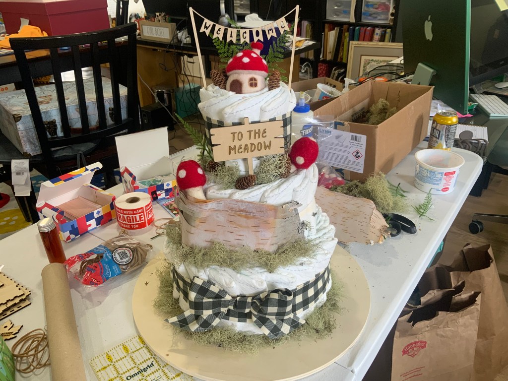 It’s been amusing to try to explain to the men of Sugar Meadow what a diaper cake is. Here’s a visual: