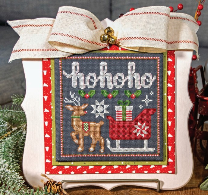 Of course, I need a little TO GO project for my trip. I don’t want to take the stocking at this point, for fear of losing it or spilling something, etc., etc. So, I picked this HO HO HO free pattern from Fat Quarter Shop that matches their free quilt I made. Click on the picture if you’re interested!