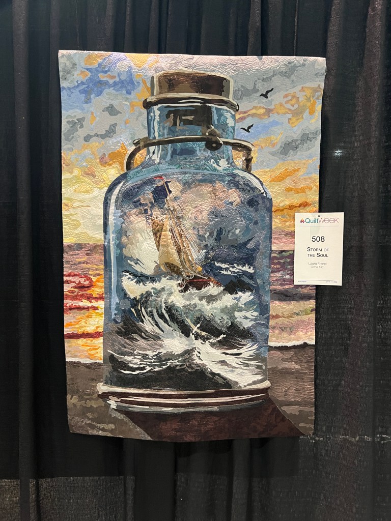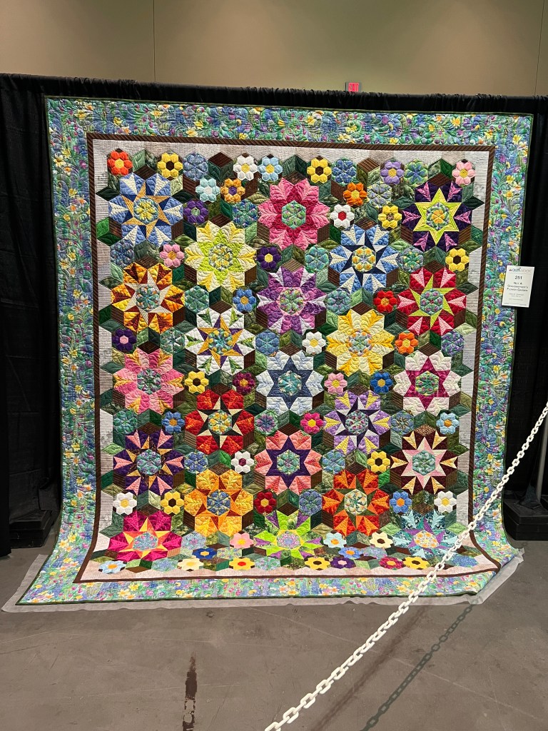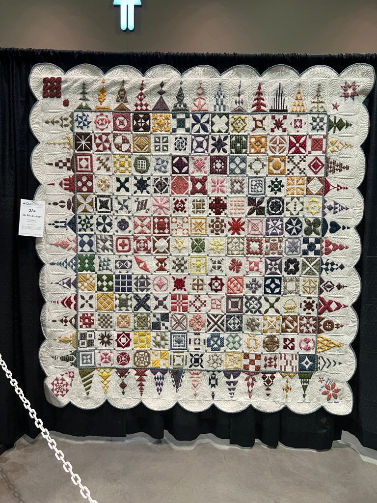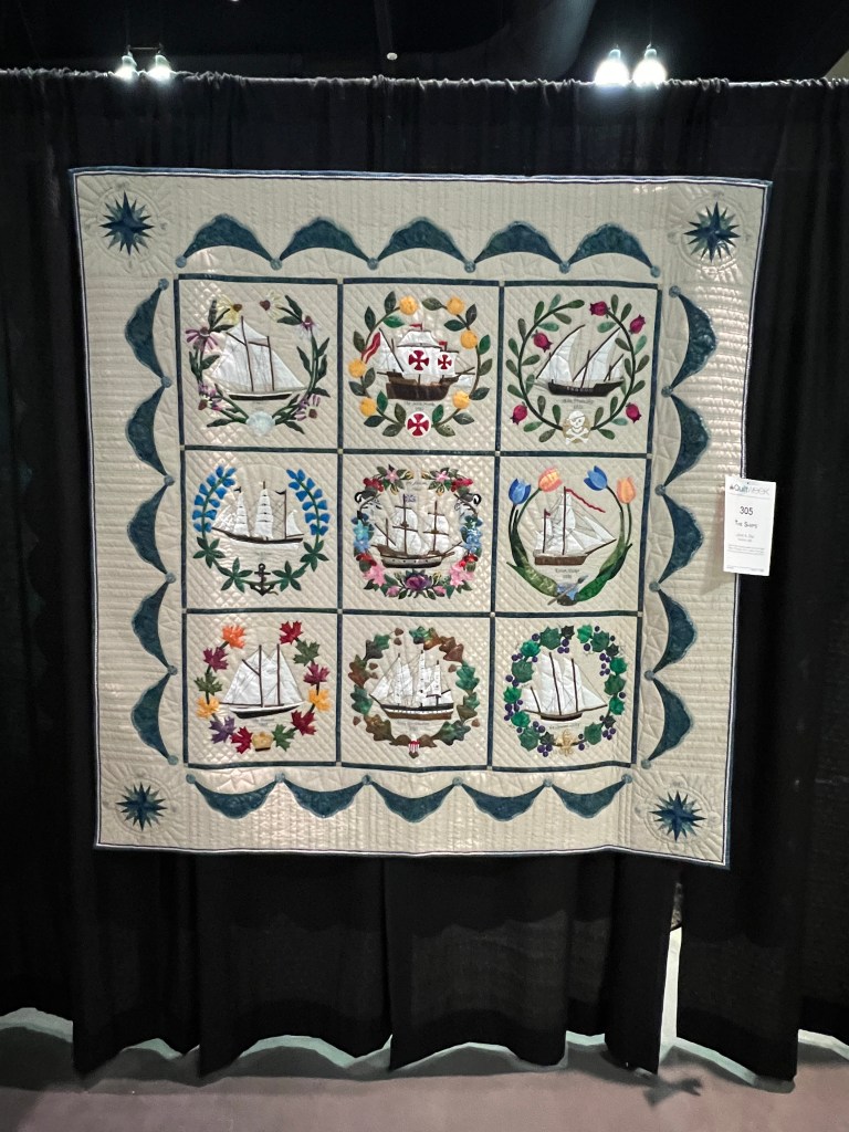One of the best parts of the show was meeting people from my old guild, the Bayberry Quilters of Cape Cod. Some old friends were staying at the hotel and then they sponsored a bus trip this day– everywhere I turned was a familiar face! Having dropped out of sight during 2020 and then moving, I was really touched by how many I remembered, and who remembered me. ❤️