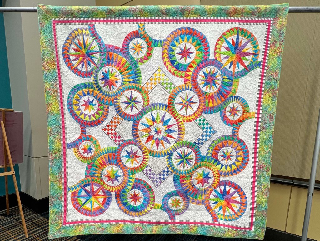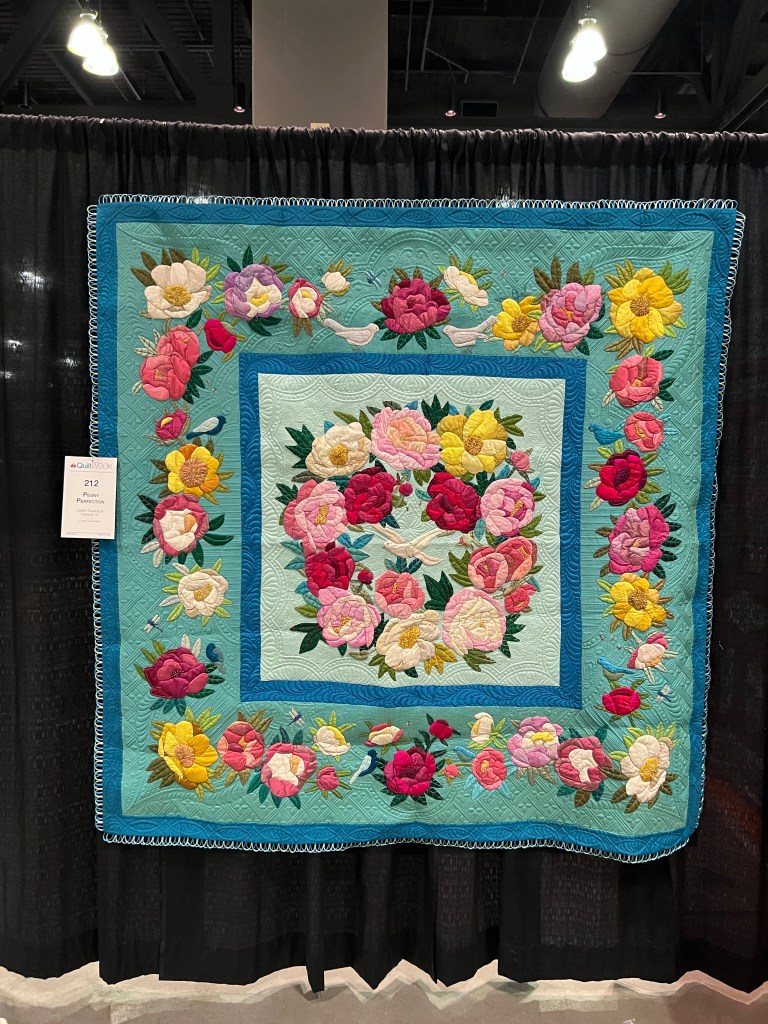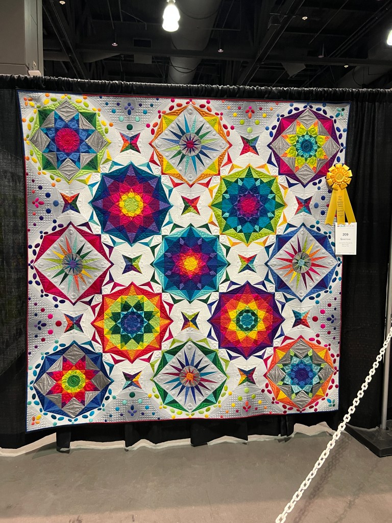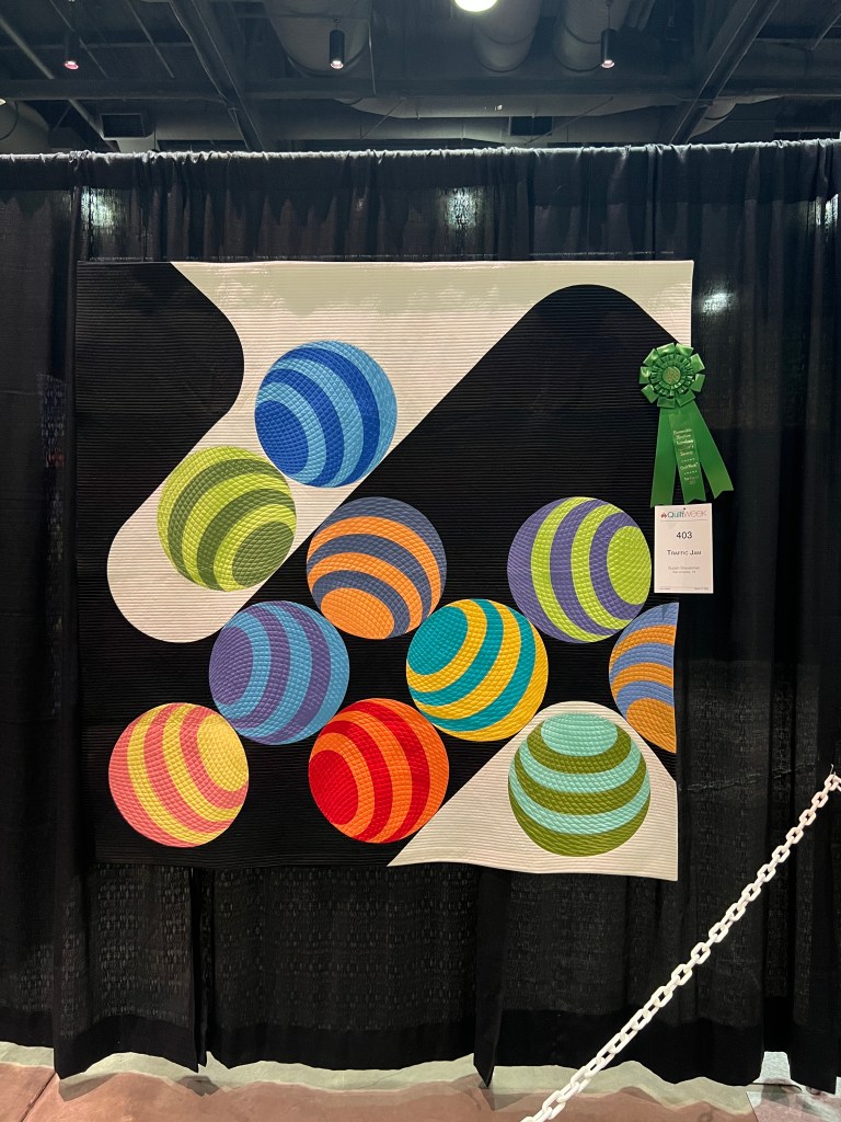 One of the best parts of the show was meeting people from my old guild, the Bayberry Quilters of Cape Cod. Some old friends were staying at the hotel and then they sponsored a bus trip this day– everywhere I turned was a familiar face! Having dropped out of sight during 2020 and then moving, I was really touched by how many I remembered, and who remembered me. ❤️