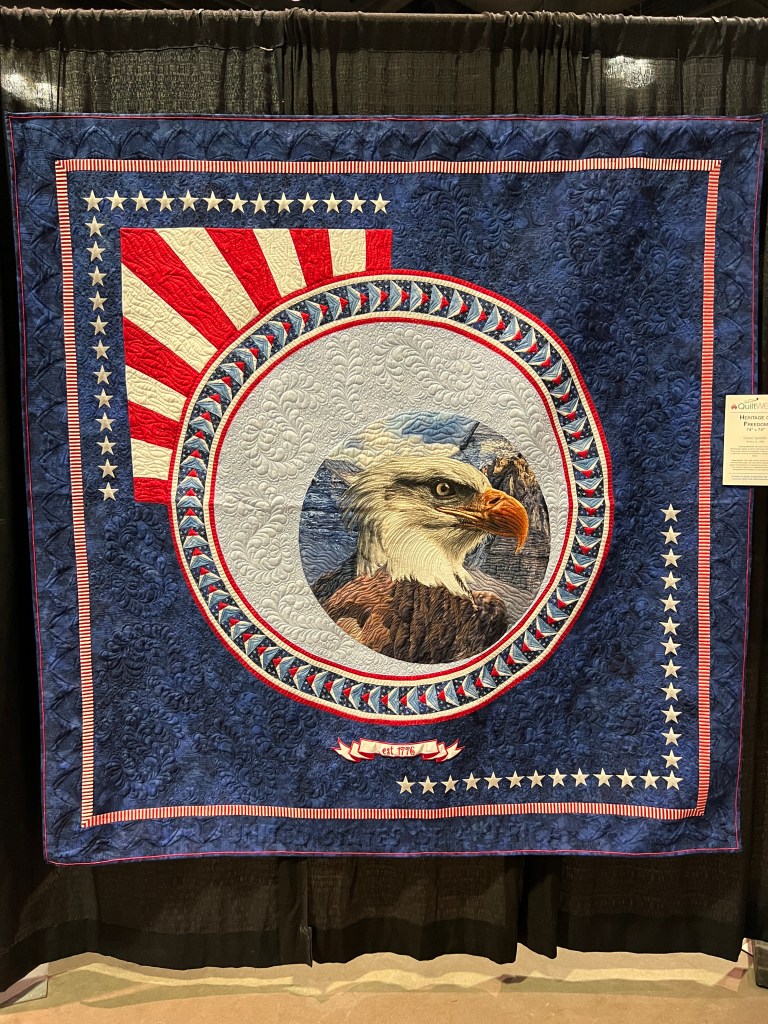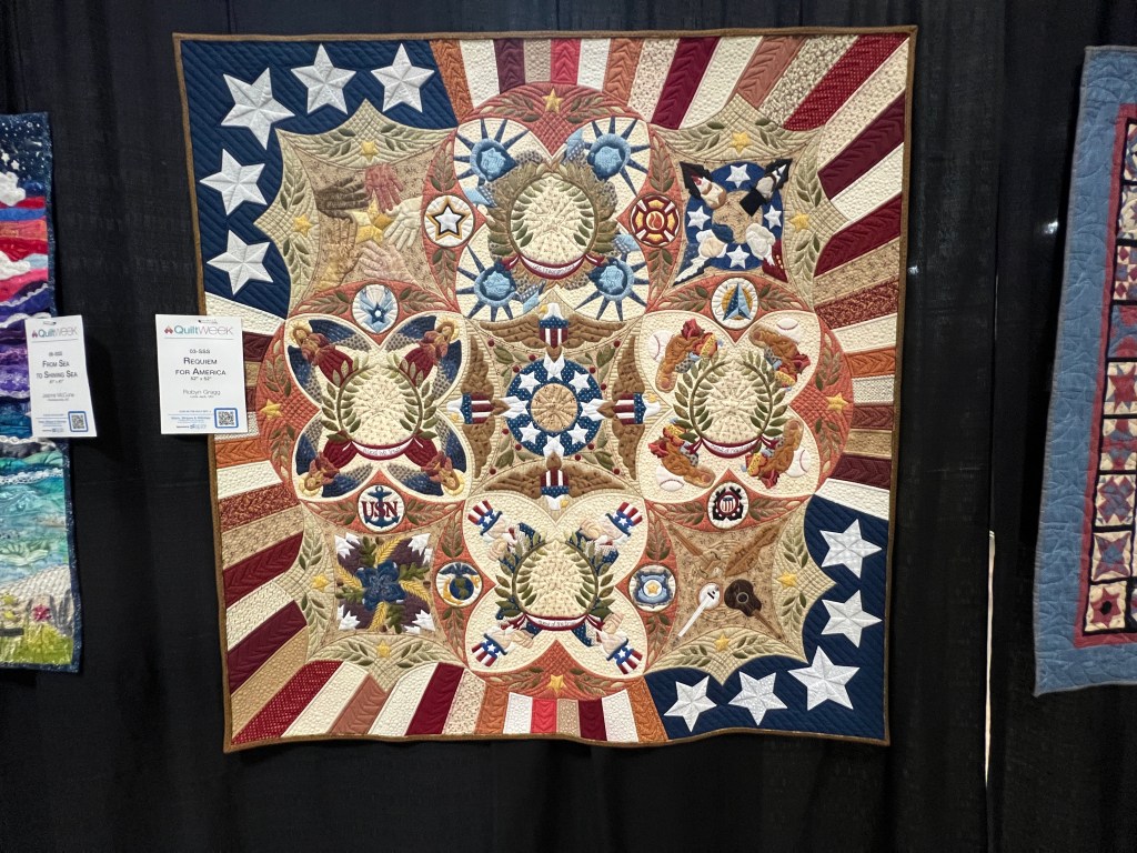 Next up– the special exhibits! The judged part of the show had about 200 quilts, but there were 700 in all. I think there were about five special exhibits, with at least two that were USA related.