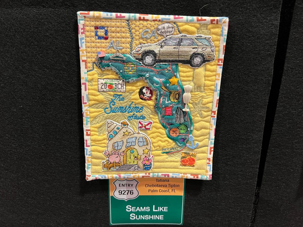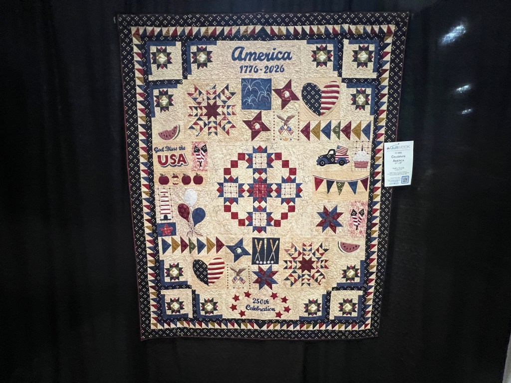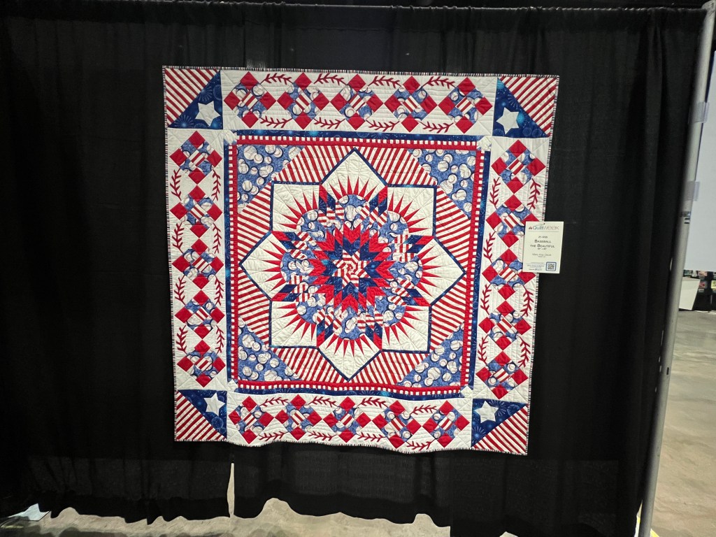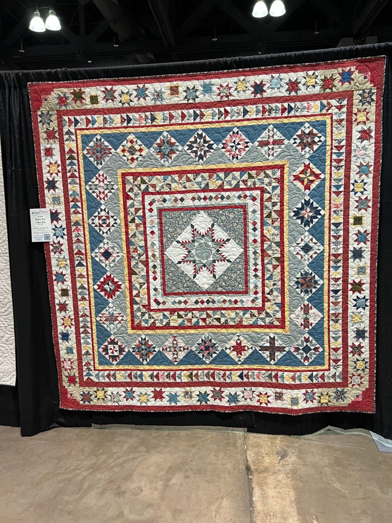 Then, of course, the patriotic exhibits. I’m not exactly sure what the challenges were, and even our tour guide got it wrong! There were a dozen quilts that seem to use the same panel, quilts from the show teachers, and then general quilts; also, American landscapes. One kind of ran on to the next, in a glorious sort of way.