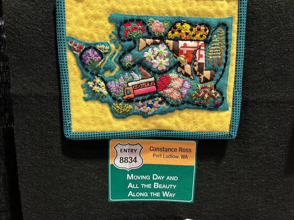 Next, there was a challenge to make a state quilt– I saw this last year, and if I had known this was the size, I might have thought more seriously on it!